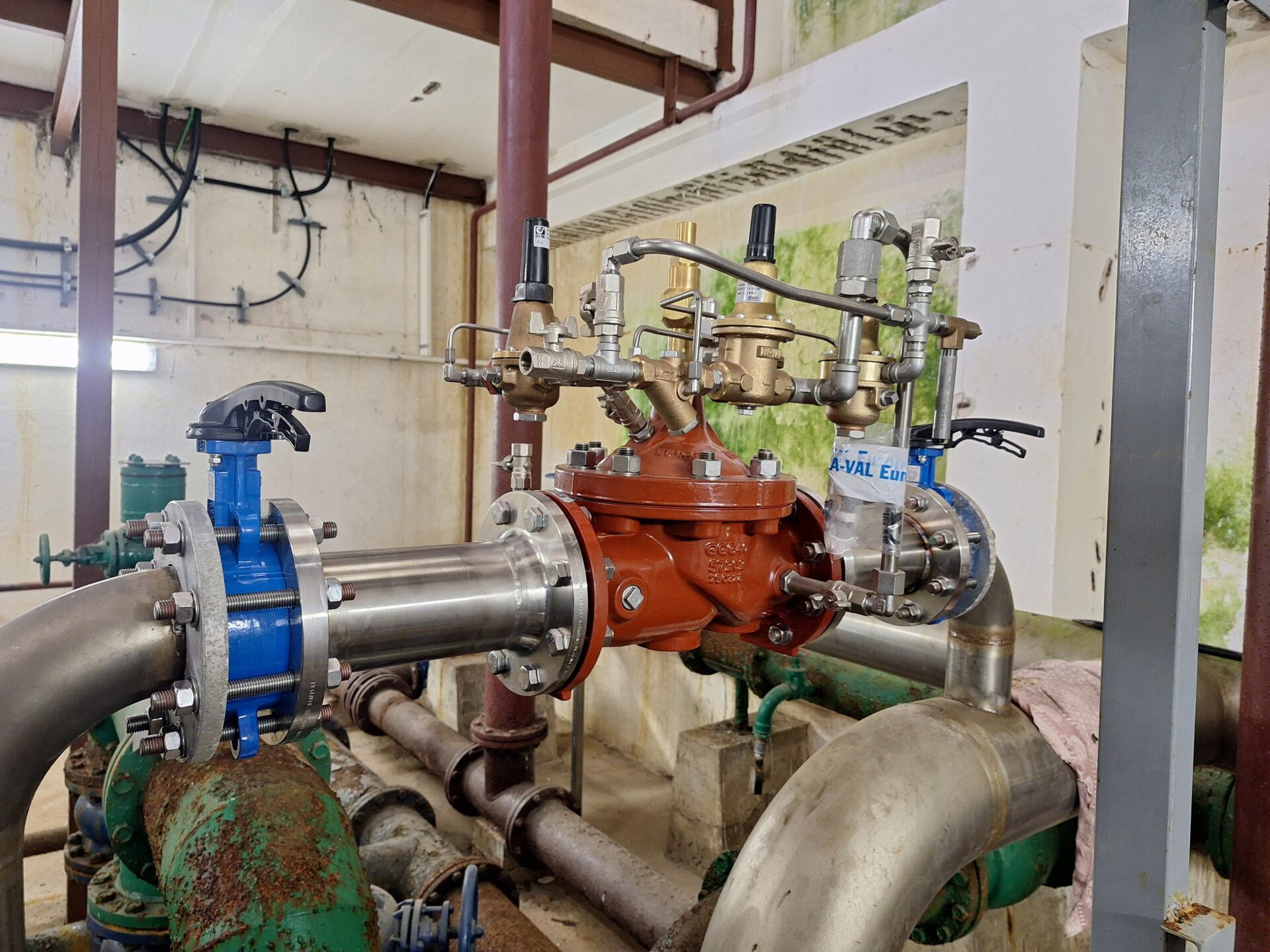 Výsledkem byl návrh opatření, který jsme zákazníkovi představili. Ten zahrnoval nahrazení stávajících uzavíracích armatur jiným typem, se servopohony s delší uzavírací dobou. Dále doplnění protirázové ochrany – redukčního ventilu CLA-VAL na bypassu mezi výtlačným potrubím a akumulační nádrží VDJ.