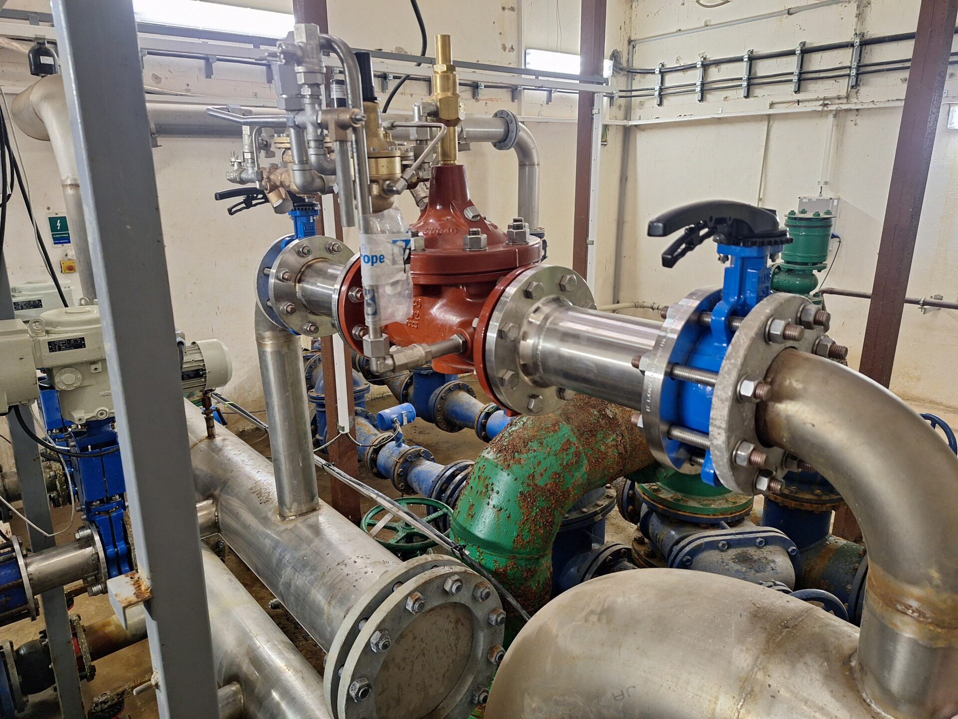Na podzim jsme realizovali montáž nových armatur i instalaci redukčního ventilu. Součástí prací byly také úpravy nerezového trubního vystrojení. Z důvodu připojení na stávající trasy bylo svařování prováděno přímo ve VDJ během plánované odstávky čerpací stanice.